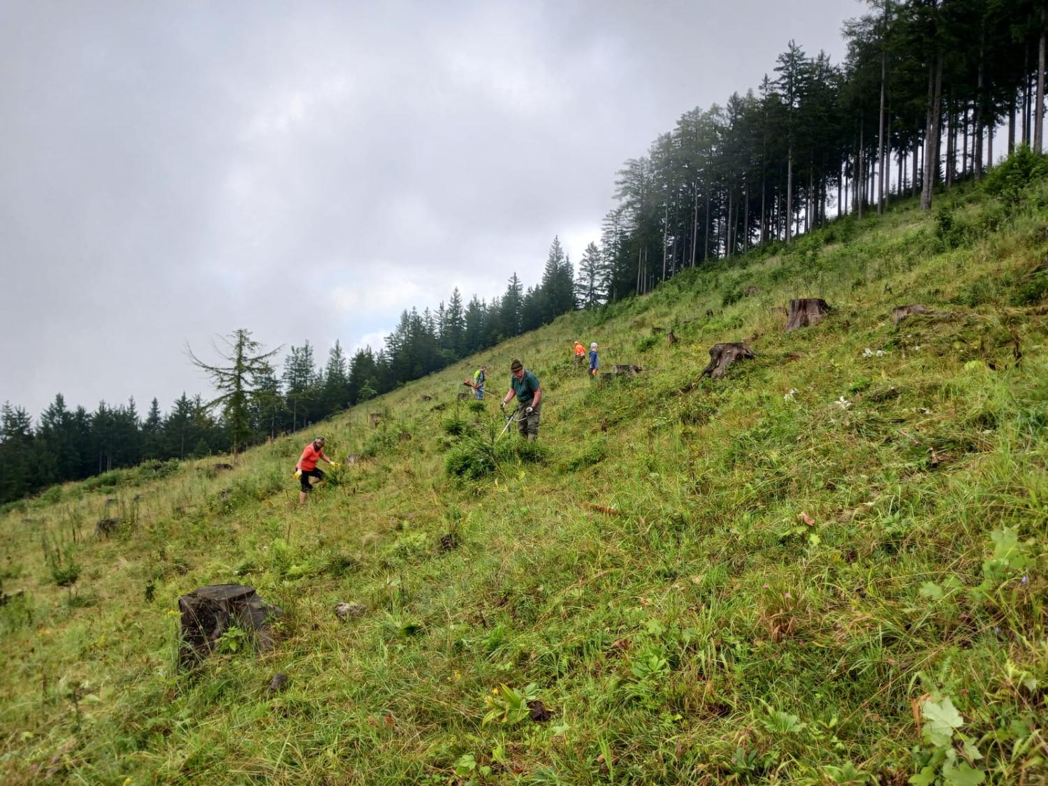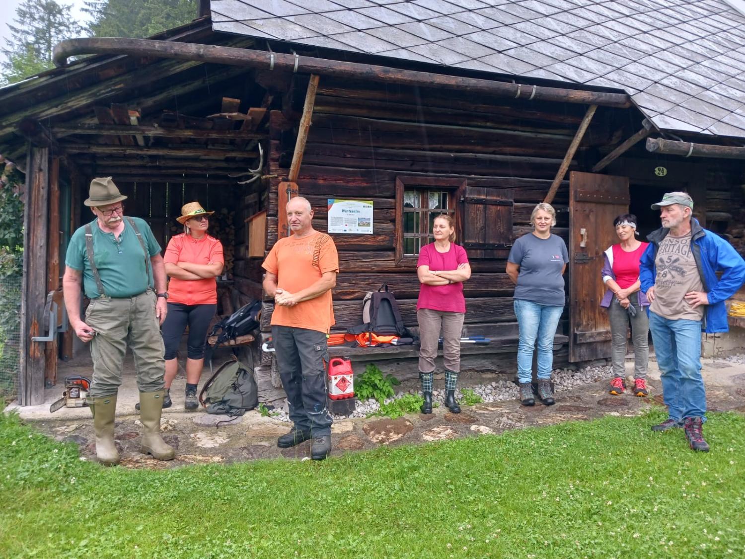 Am Samstag, auf 1013 Metern Seehöhe, engagierten sich 12 Freiwillige auf der Winteralm im Schwabeltal für die Pflege der Almflächen durch das sogenannte Schwenden. Diese wichtige Maßnahme im Alpenraum beinhaltet das Schneiden kleiner Bäume, Gebüsche und Zwergsträucher sowie das Entfernen des anfallenden Materials. Im Gegensatz zur Rodung bleiben beim Schwenden das Wurzelwerk und die Baumstümpfe auf der Fläche, wodurch die Vegetation und der Lebensraum in ihrer natürlichen Form erhalten bleiben.