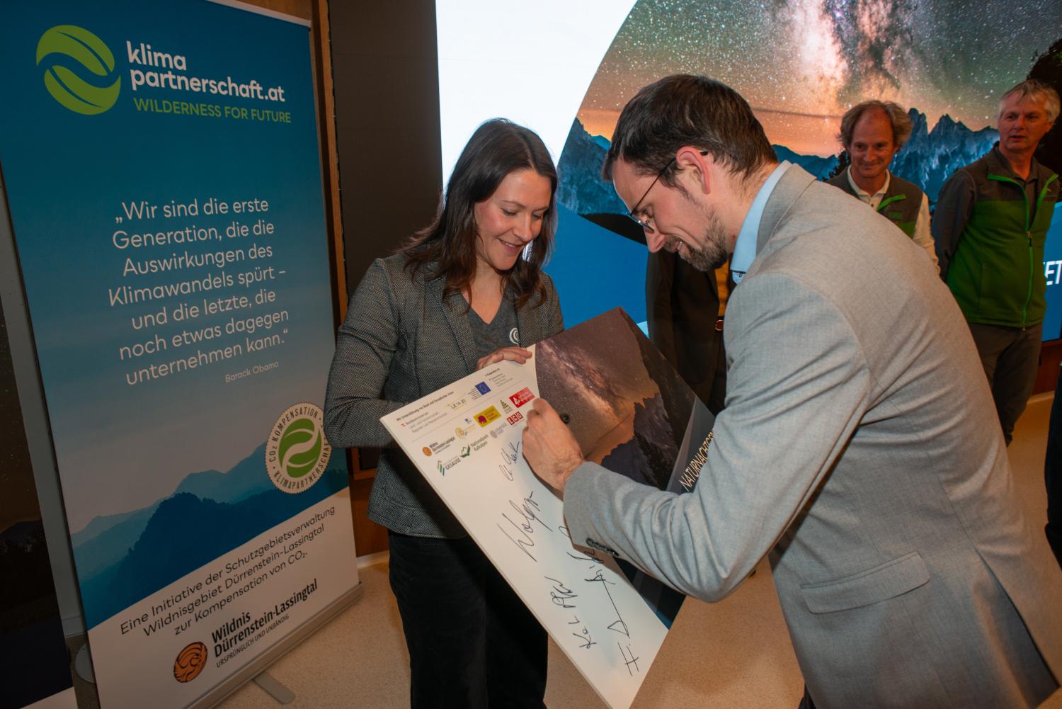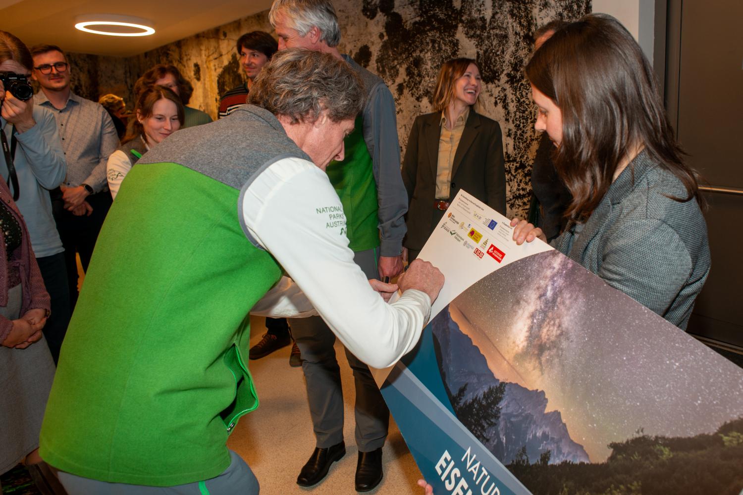 Zum Abschluss setzten die Vertreter:innen der Schutzgebiete ihre Unterschriften unter das „Naturnachtgebiet Eisenwurzen“ und bekräftigten damit ihr gemeinsames Engagement für den Schutz der dunklen Nächte sowie die Einreichung bei der DarkSky International.