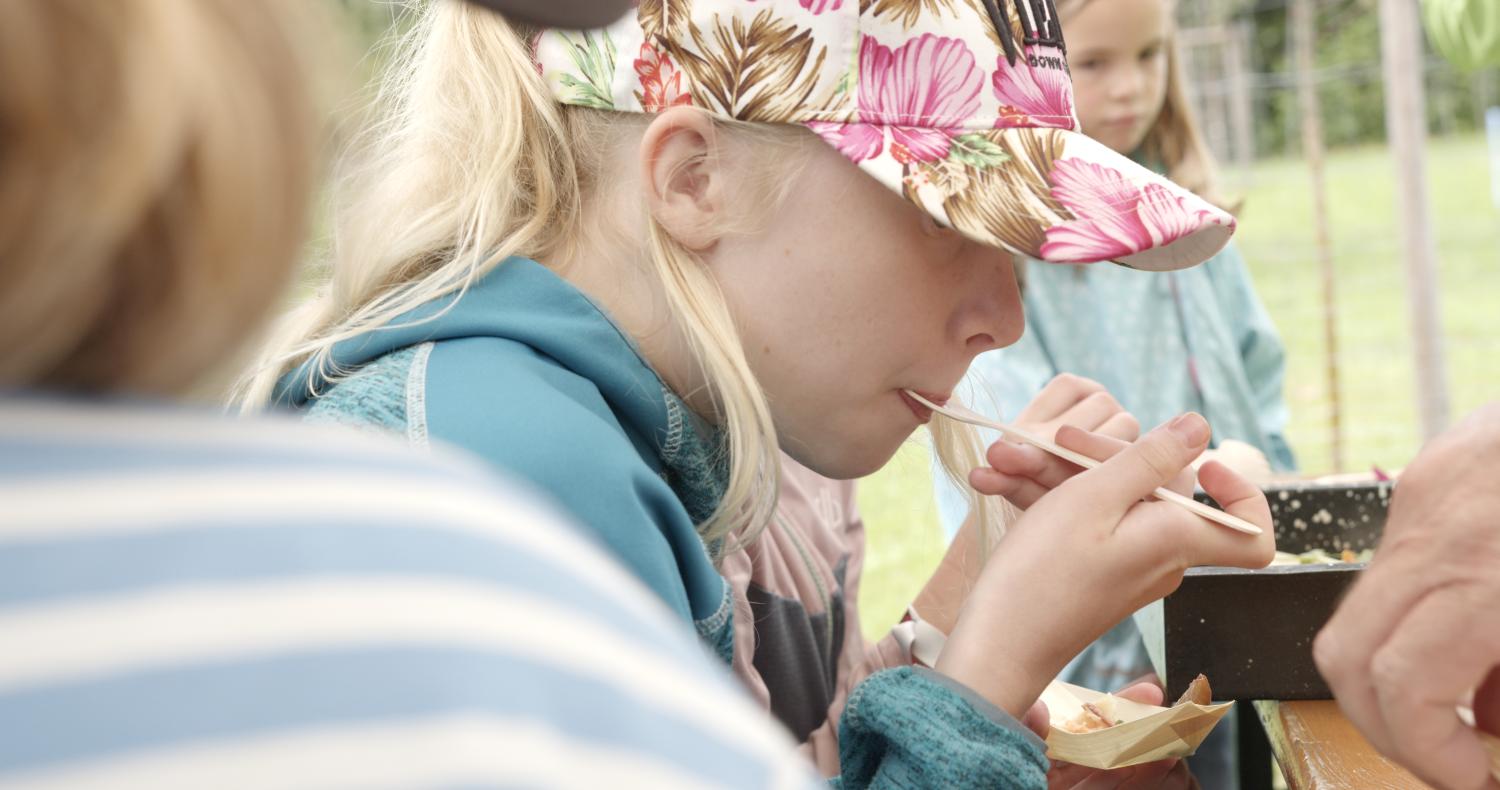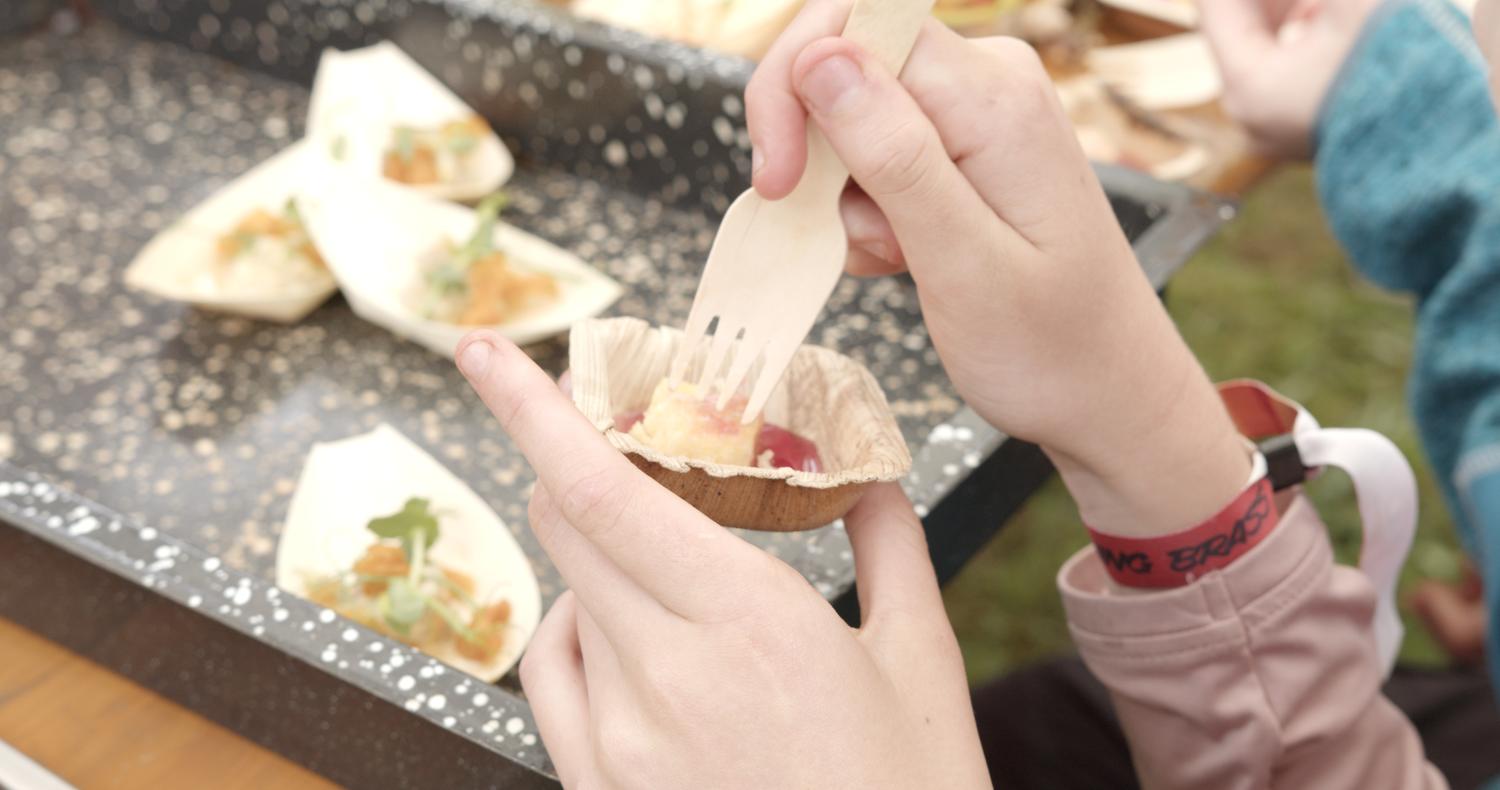 Besonders aufregend war der Höhepunkt des Tages, als ausgewählte Neobiota beim Mittagessen von Jung und Alt verspeist wurden. Diese einzigartige Gelegenheit erlaubte es den Teilnehmer:innen, die kulinarische Vielfalt von Neobiota auf eine völlig neue Art und Weise zu erleben. Verspeist wurden Regenbogenforellentartar mit Süßkartoffelchips, Signalkrebs auf Kartoffelpüree und in Butter geschwenkter Japanischer Staudenknöterich und als Nachspeise gab es Polentaschnitten mit Springkraut-Gelee.