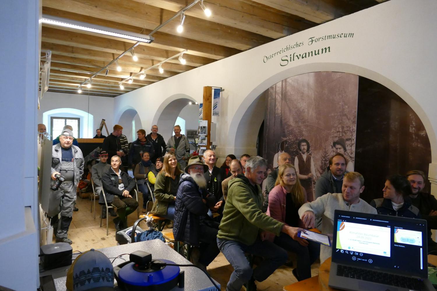 Der zweite Baumbasar fand am 30. September 2023 erneut beim Museumsfest im Forstmuseum Silvanum statt. 30 Teilnehmer:innen nahmen teil und hörten Vorträge zu:
