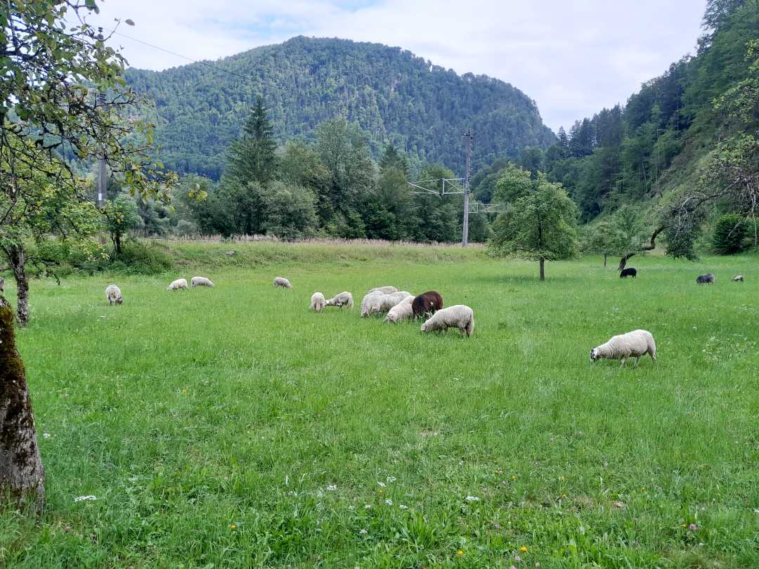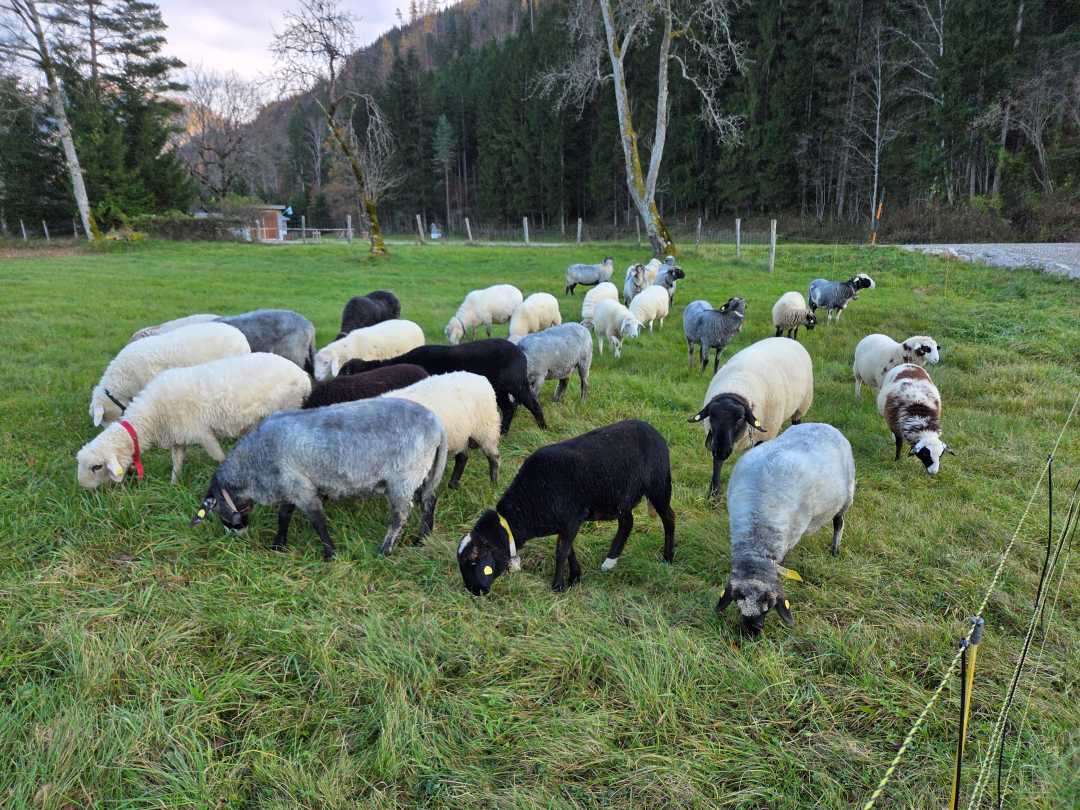 - Maßnahme: Beweidung auf der extensiven Wiesenfläche im Ortsteil Palfau der Gemeinde Landl (ca. 0,5 ha) mit Kreiner Steinschafen (15 Stück).