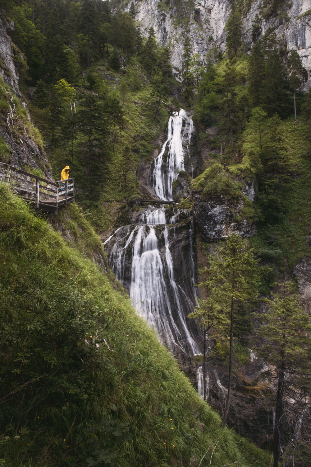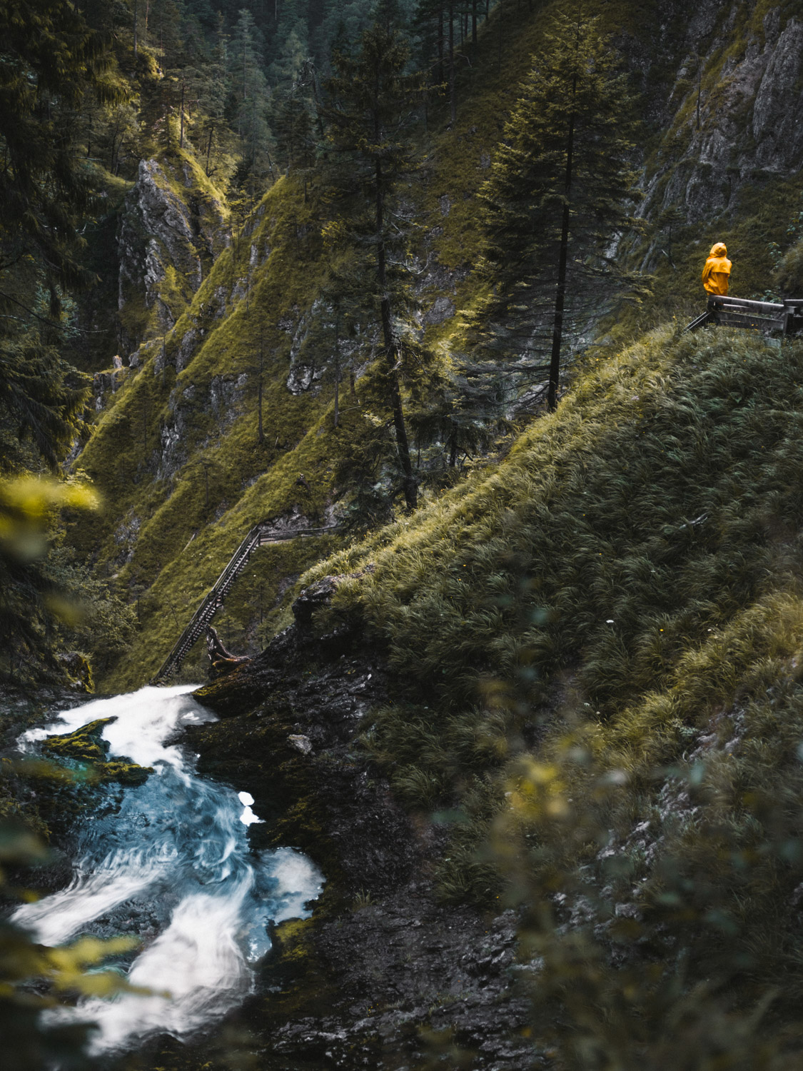 Dabei gilt es, Wasserfälle zu bestaunen und Felswände zu beachten. Hier gedeihen in aller Ruhe zarte Schönheiten: Dazu zählen das weißblütige Kalkfels-Fingerkraut und der Schwarzbraun-Streifenfarn. An einem Sommertag ist das Zirpen von Alpen-Strauchschnecke und Zwitscher-Heuschrecke nicht zu überhören. Und manchmal zieht über uns allen der Steinadler seine Kreise.